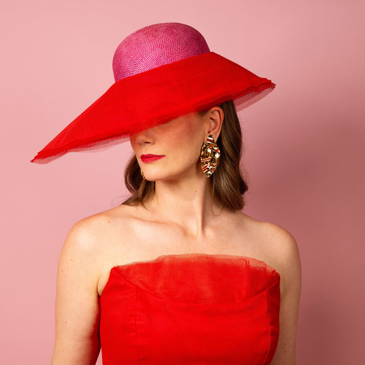 Carmen wide brimmed fedora hat in red Spring Racewear Hat