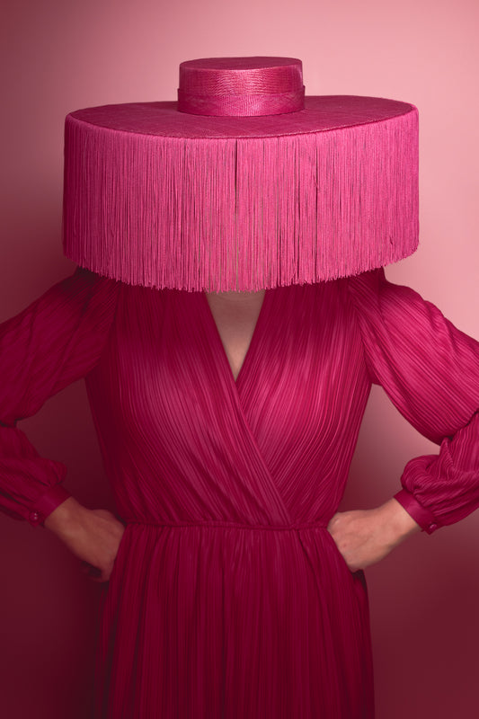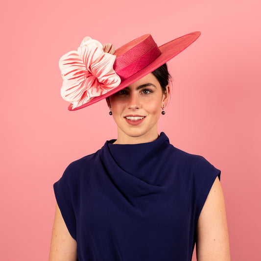 Pink Statement Boater with tassel trim for Lillian Frank AM MBE Millinery Award