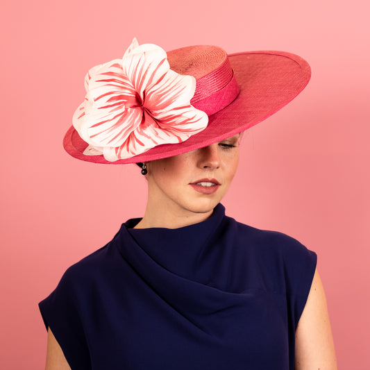 Lola Straw Boater with Silk Poppy Flowers in Pink