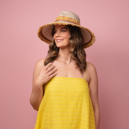 Alexis Boater in Marigold Yellow with Knotted Straw Trim