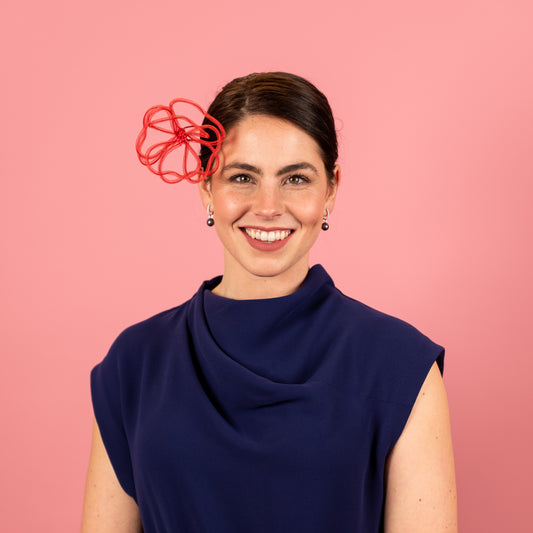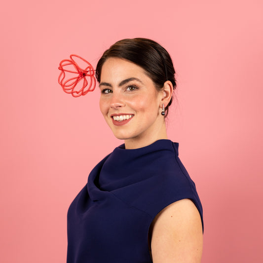 Kimberly Headband with Floating Wire Peony Flower in Red