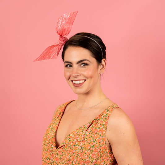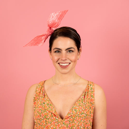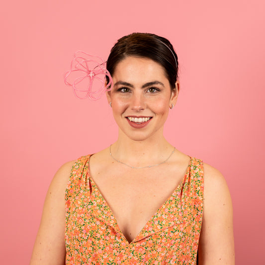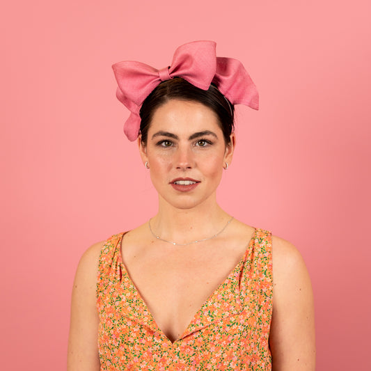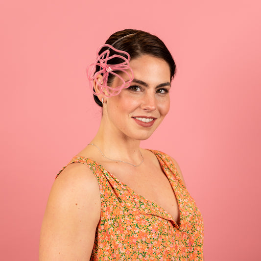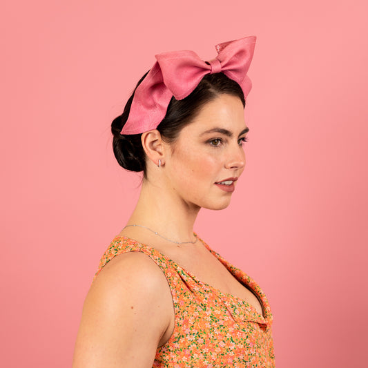 Florence Headband in pink straw with knotted trim Spring Racewear Headpiece