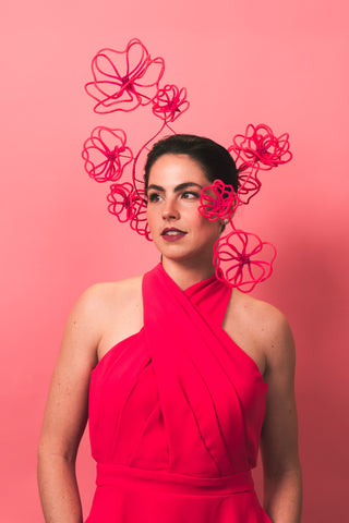 Kimberly Headband with Floating Wire Peony Flower in Red