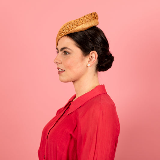 Celeste Beret with Knotted Trim in Cream Straw Spring Racewear Headpiece