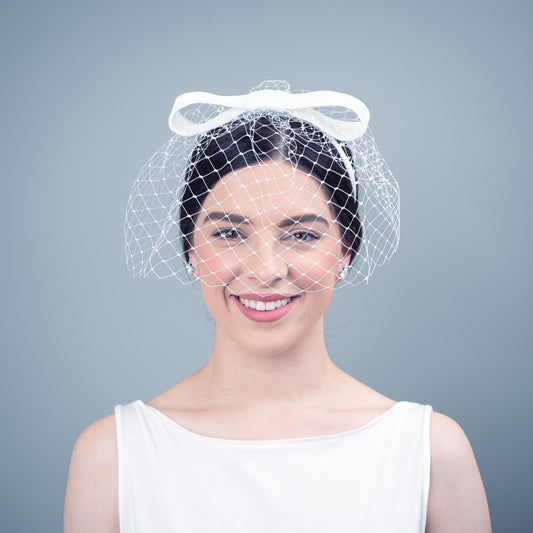 No Other Love white birdcage veil with velvet bow