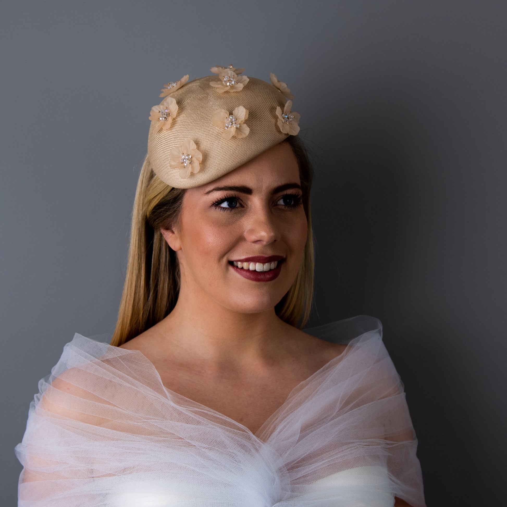 Always and Forever is a stunning beret shape created from a high quality fine straw and adorned with tonal beaded motifs. The piece is secured with wire and comb.