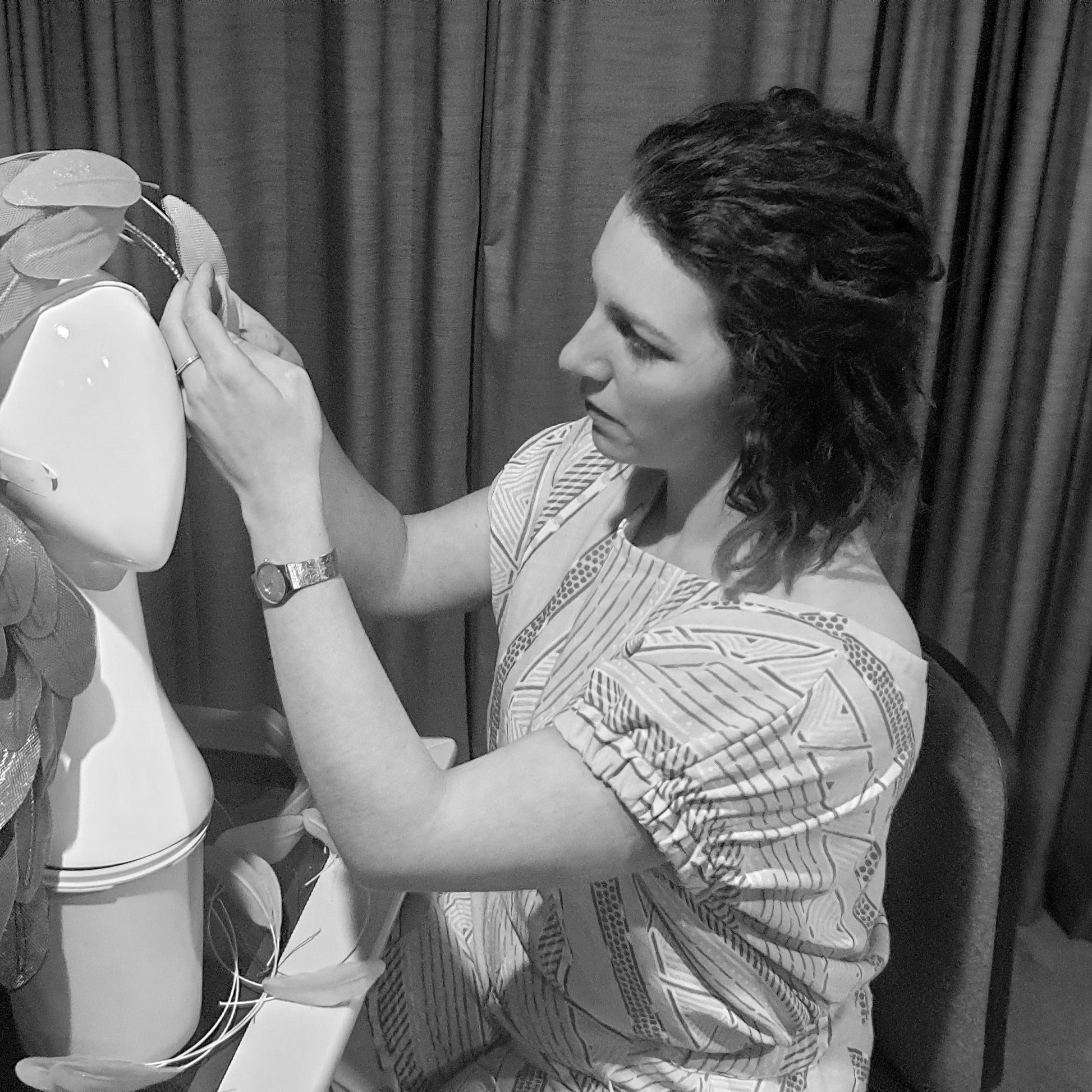 Many hats and headpieces in the Lauren J Ritchie Millinery Collections can be custom made in a selection of other colours and variations in style. Pieces can also be specially designed based on your outfit or inspiration. Make an appointment with Lauren to chat about your custom piece.