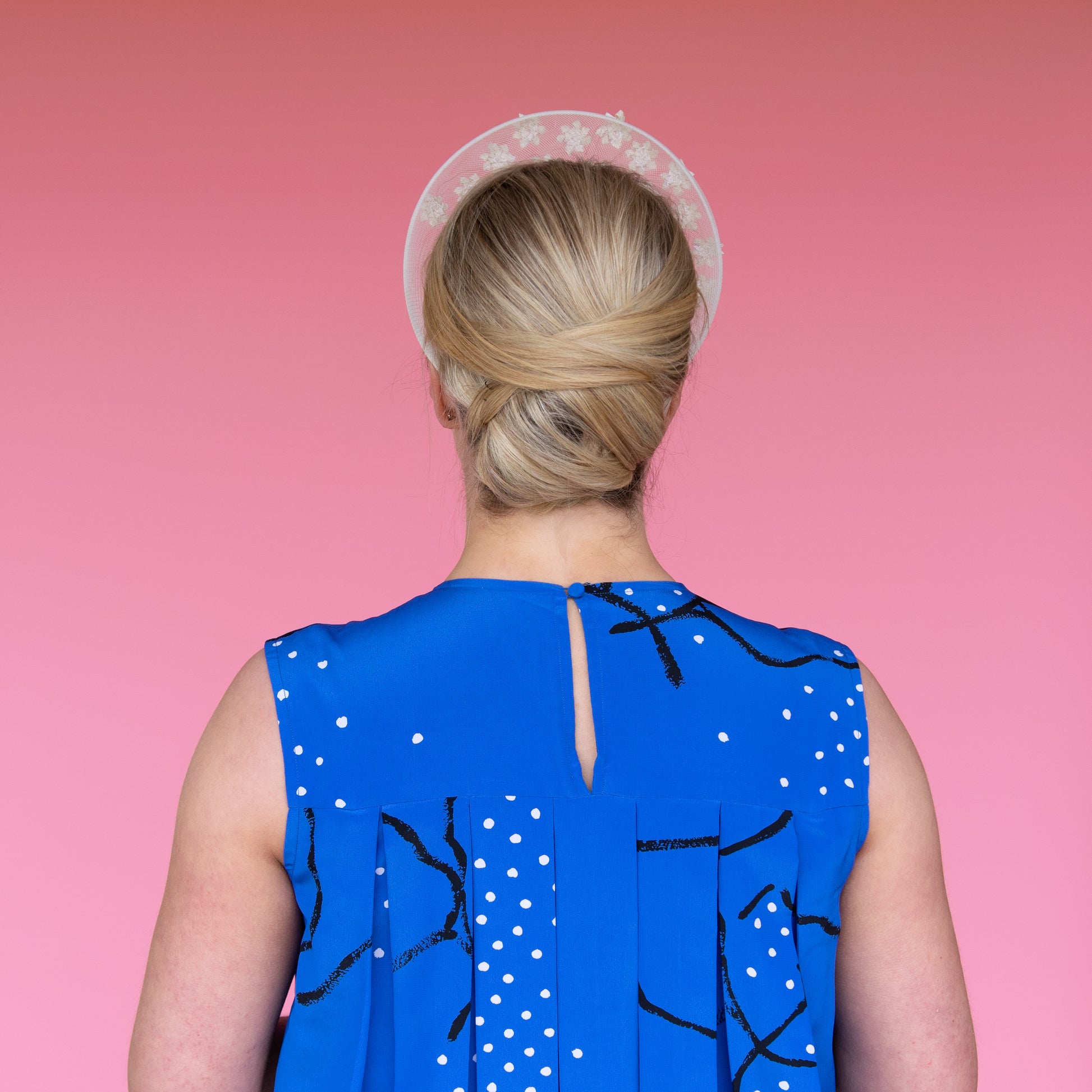 The headpiece can be custom made in a selection of other colours. Contact us to find out more about customising this style.