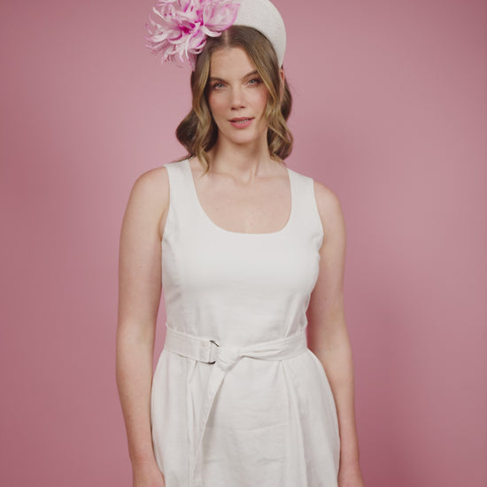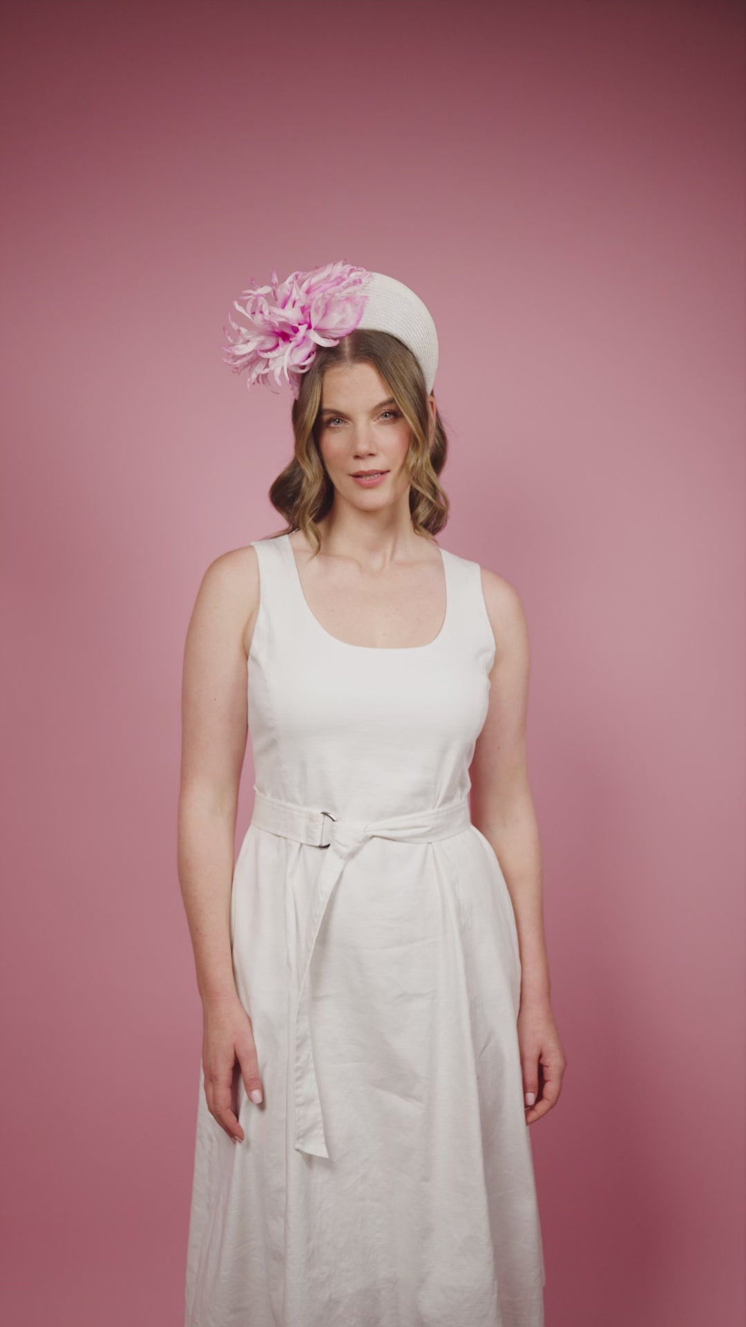 Emma Halo in white with pink and white flowers Spring Racing Headpiece