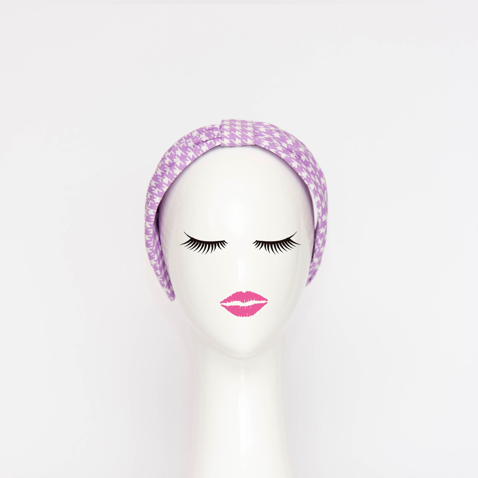 This piece is part of the Indi Summer Collection and is perfect for many occasions, select your lavender Houndstooth Georgie Headband today.